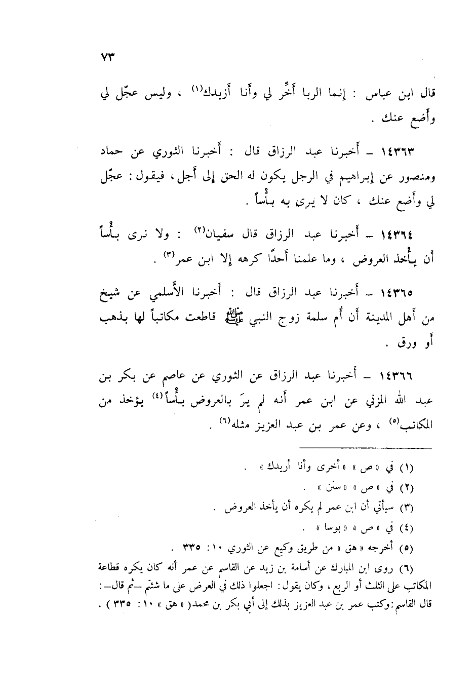 ١٤٣٦٤ - عَبْدُ الرَّزَّاقِ قَالَ: قَالَ سُفْيَانُ: «وَلَا نَرَى بَأْسًا أَنْ يَأْخُذَ الْعُرُوضَ» وَمَا عَلِمْنَا أَحَدٌاً كَرِهَهُ إِلَّا ابْنَ عُمَرَ "
