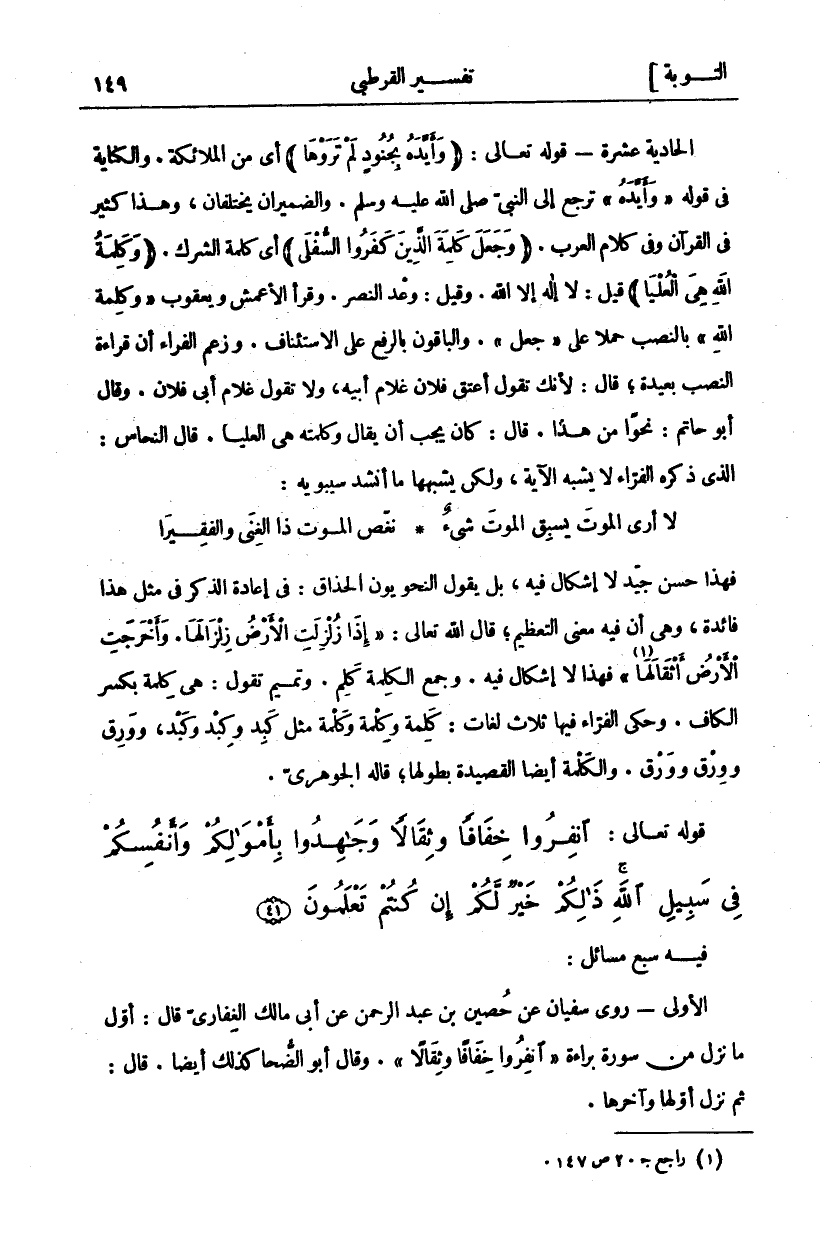 انْفِرُوا خِفافاً وَثِقالاً وَجاهِدُوا بِأَمْوالِكُمْ وَأَنْفُسِكُمْ فِي سَبِيلِ اللَّهِ ذلِكُمْ خَيْرٌ لَكُمْ إِنْ كُنْتُمْ تَعْلَمُونَ (٤١)
