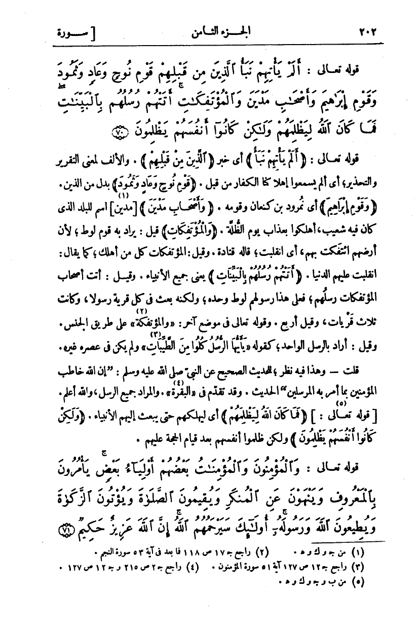 أَلَمْ يَأْتِهِمْ نَبَأُ الَّذِينَ مِنْ قَبْلِهِمْ قَوْمِ نُوحٍ وَعادٍ وَثَمُودَ وَقَوْمِ إِبْراهِيمَ وَأَصْحابِ مَدْيَنَ وَالْمُؤْتَفِكاتِ أَتَتْهُمْ رُسُلُهُمْ بِالْبَيِّناتِ فَما كانَ اللَّهُ لِيَظْلِمَهُمْ وَلكِنْ كانُوا أَنْفُسَهُمْ يَظْلِمُونَ (٧٠)