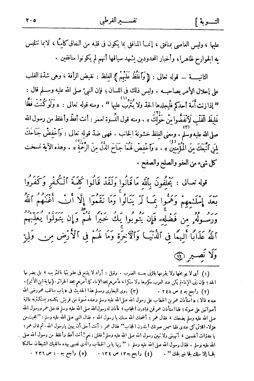 يَحْلِفُونَ بِاللَّهِ مَا قالُوا وَلَقَدْ قالُوا كَلِمَةَ الْكُفْرِ وَكَفَرُوا بَعْدَ إِسْلامِهِمْ وَهَمُّوا بِما لَمْ يَنالُوا وَما نَقَمُوا إِلاَّ أَنْ أَغْناهُمُ اللَّهُ وَرَسُولُهُ مِنْ فَضْلِهِ فَإِنْ يَتُوبُوا يَكُ خَيْراً لَهُمْ وَإِنْ يَتَوَلَّوْا يُعَذِّبْهُمُ اللَّهُ عَذاباً أَلِيماً فِي الدُّنْيا وَالْآخِرَةِ وَما لَهُمْ فِي الْأَرْضِ مِنْ وَلِيٍّ وَلا نَصِيرٍ (٧٤)