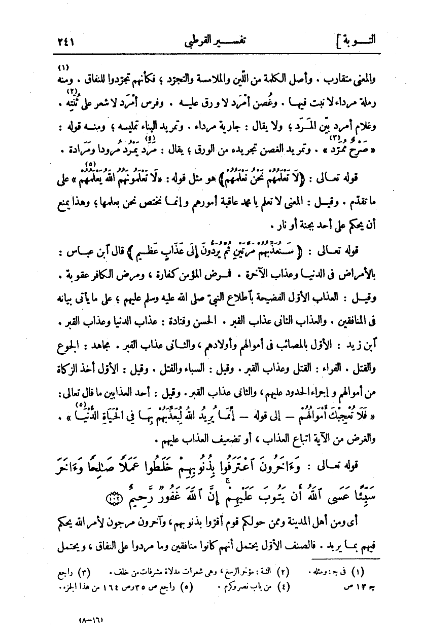 وَآخَرُونَ اعْتَرَفُوا بِذُنُوبِهِمْ خَلَطُوا عَمَلاً صالِحاً وَآخَرَ سَيِّئاً عَسَى اللَّهُ أَنْ يَتُوبَ عَلَيْهِمْ إِنَّ اللَّهَ غَفُورٌ رَحِيمٌ (١٠٢)