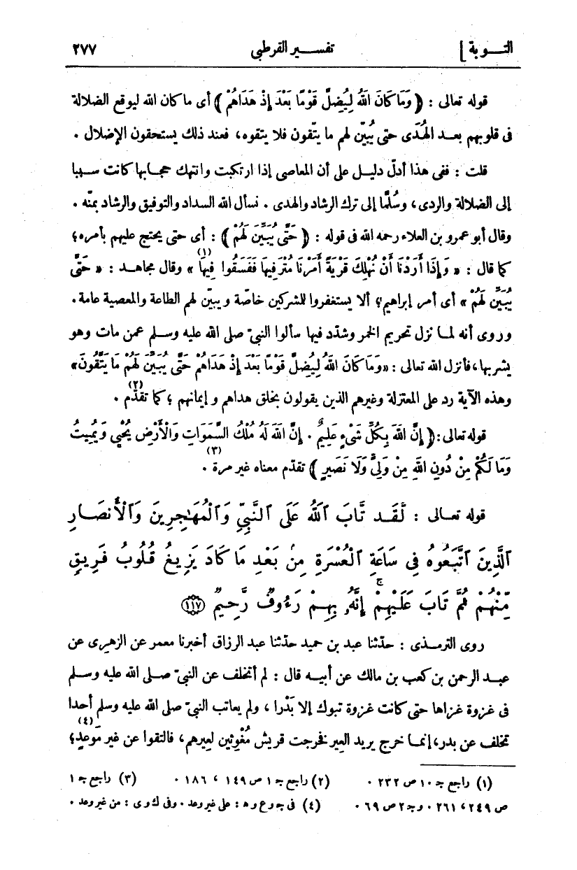 لَقَدْ تابَ اللَّهُ عَلَى النَّبِيِّ وَالْمُهاجِرِينَ وَالْأَنْصارِ الَّذِينَ اتَّبَعُوهُ فِي ساعَةِ الْعُسْرَةِ مِنْ بَعْدِ مَا كادَ يَزِيغُ قُلُوبُ فَرِيقٍ مِنْهُمْ ثُمَّ تابَ عَلَيْهِمْ إِنَّهُ بِهِمْ رَؤُفٌ رَحِيمٌ (١١٧)