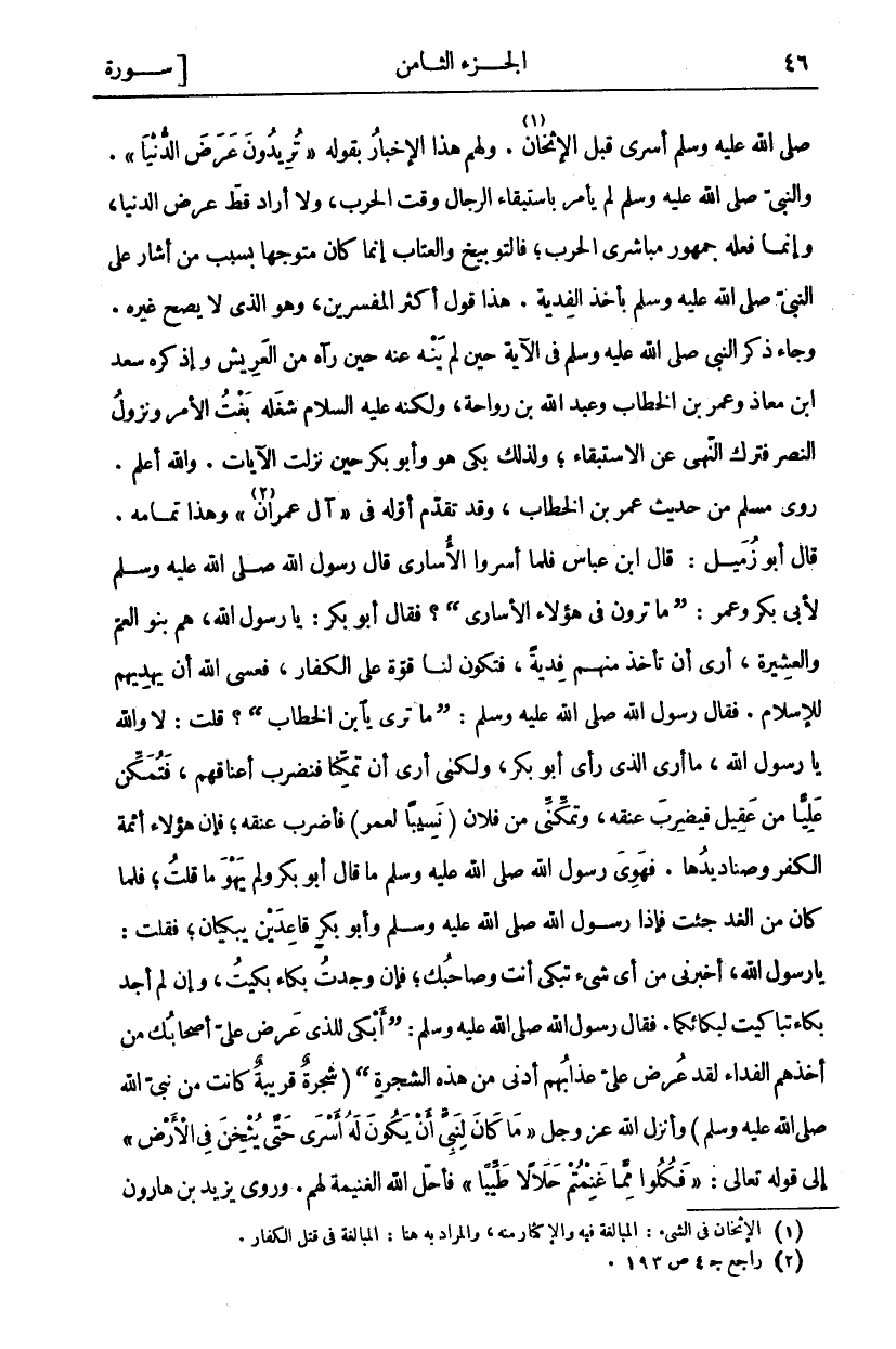 (١). الإثخان في الشيء: المبالغة فيه والإكثار منه، والمراد به هنا: المبالغة في قتل الكفار.