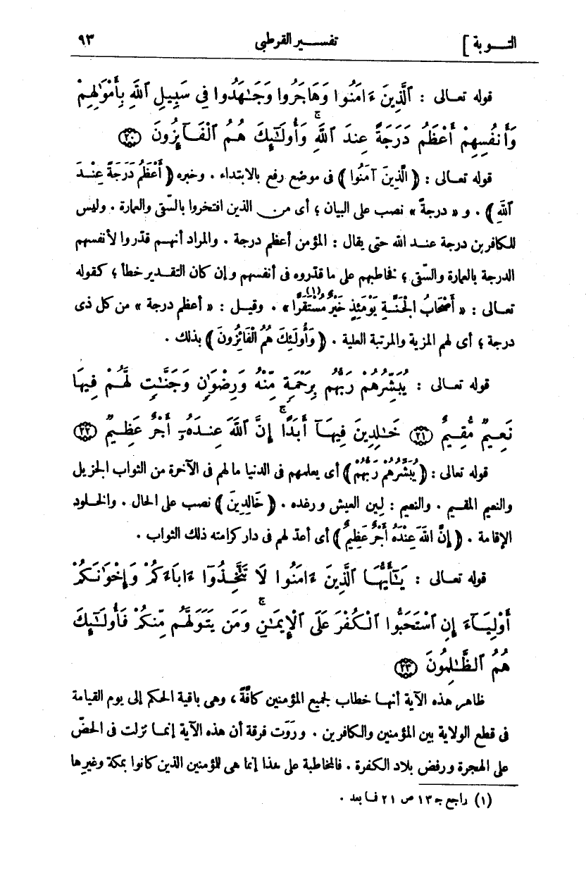 الَّذِينَ آمَنُوا وَهاجَرُوا وَجاهَدُوا فِي سَبِيلِ اللَّهِ بِأَمْوالِهِمْ وَأَنْفُسِهِمْ أَعْظَمُ دَرَجَةً عِنْدَ اللَّهِ وَأُولئِكَ هُمُ الْفائِزُونَ (٢٠)