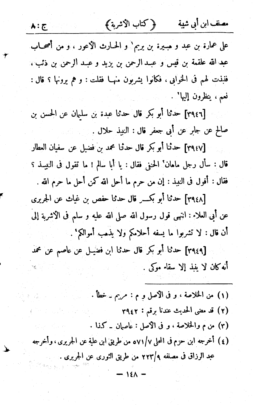 كتاب مصنف ابن أبي شيبة ط السلفية بالهند (اسم الجزء: 8)