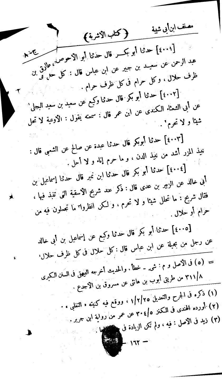 24423- حَدَّثَنَا ابْنُ نُمَيْرٍ ، قَالَ : حدَّثَنَا إِسْمَاعِيلُ بْنُ أَبِي خَالِدٍ ، عَنِ الزُّبَيْرِ بْنِ عَدِيِّ ، قَالَ : ذُكِرَ عِنْدَ شُرَيْحٍ الأَسْقِيَةُ الَّتِي تُنْبَذُ فِيهَا ، فَقَالَ شُرَيْحٌ : مَا يُحْلِلْنَ شَيْئًا ، وَلاَ يُحَرِّمْنَ ، وَلَكِنَ اُنْظُرُوا مَا تَجْعَلُونَ فِيهِ مِنْ حَلاَلٍ ، أَوْ حَرَامٍ.