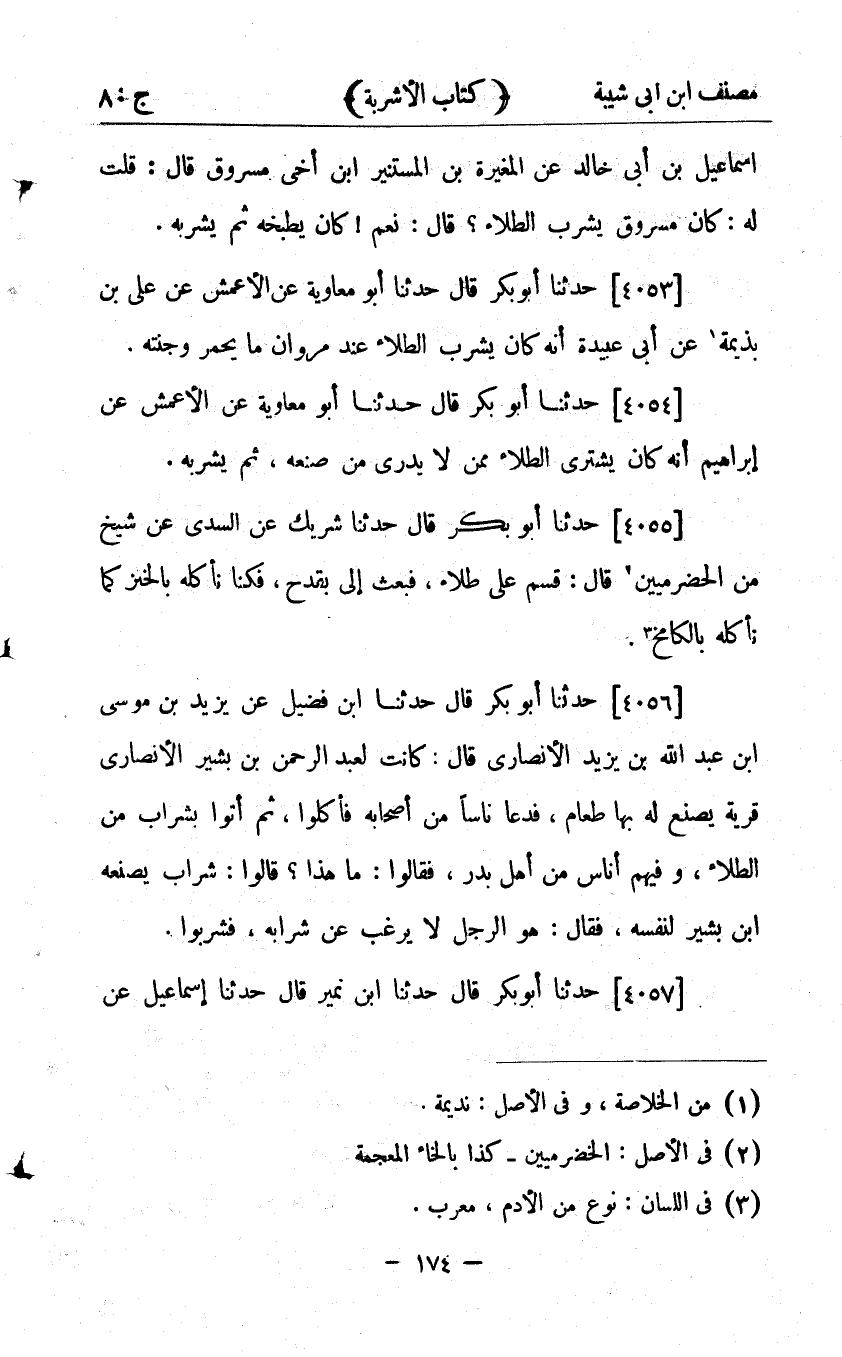 24476- حَدَّثَنَا ابْنُ نُمَيْرٍ ، قَالَ : حدَّثَنَا إِسْمَاعِيلُ ، عَنْ مُغِيرَةَ ، عَنْ شُرَيْحٍ ؛ أَنَّ خَالِدَ بْنَ الْوَلِيدِ كَانَ يَشْرَبُ الطِّلاَءَ بِالشَّامِ.