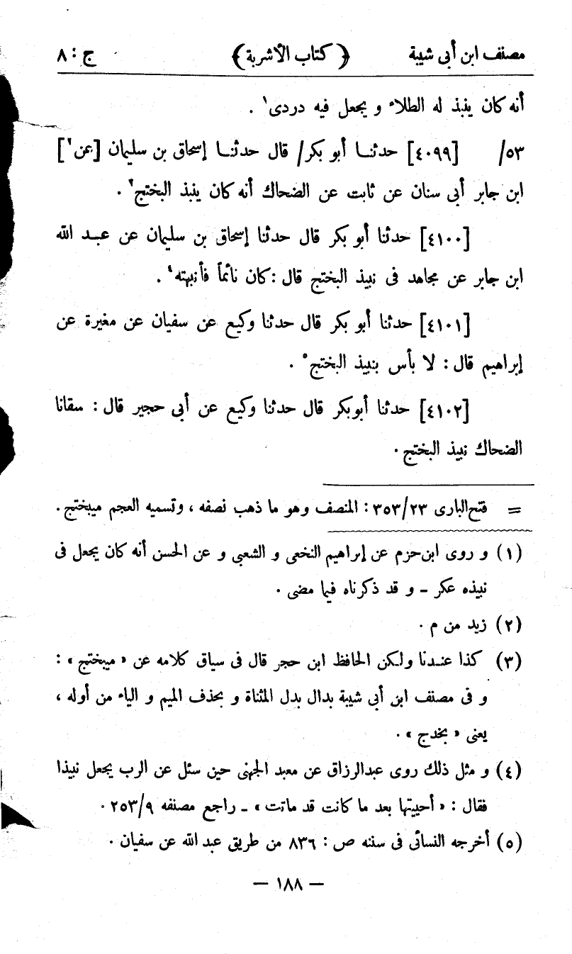 24525 - حَدَّثَنَا وَكِيعٌ، عَنْ أَبِي حُجَيْرٍ، قَالَ: سَقَانَا الضَّحَّاكُ نَبِيذَ الْبُخْتُجِ.