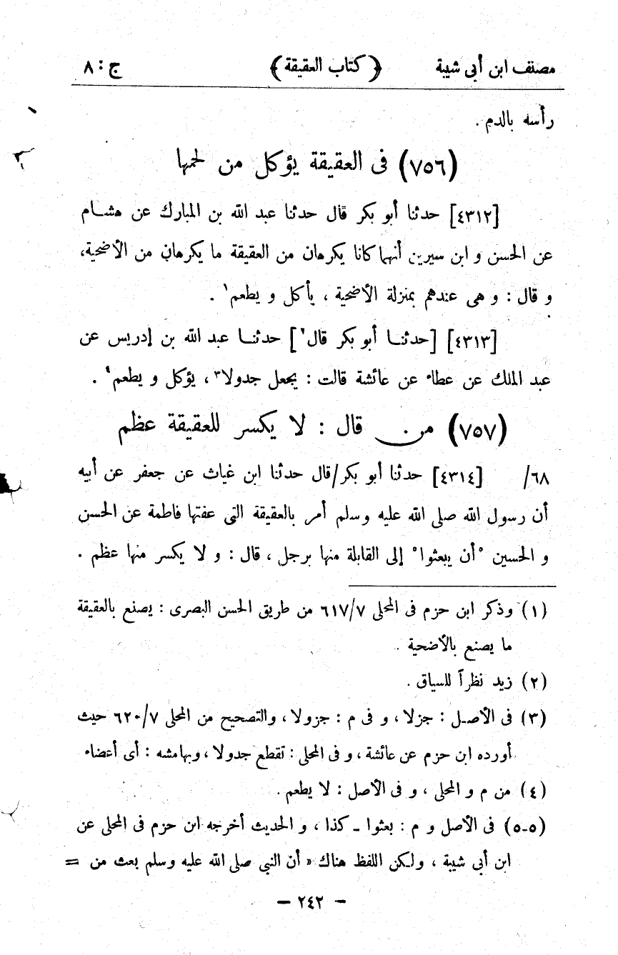 6- مَنْ قَالَ لاَ يُكْسَرُ لِلْعَقِيقَةِ عَظْمٌ.