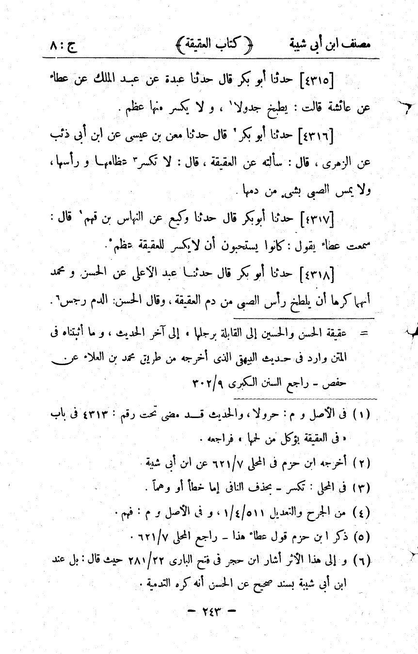 كتاب مصنف ابن أبي شيبة ط السلفية بالهند (اسم الجزء: 8)