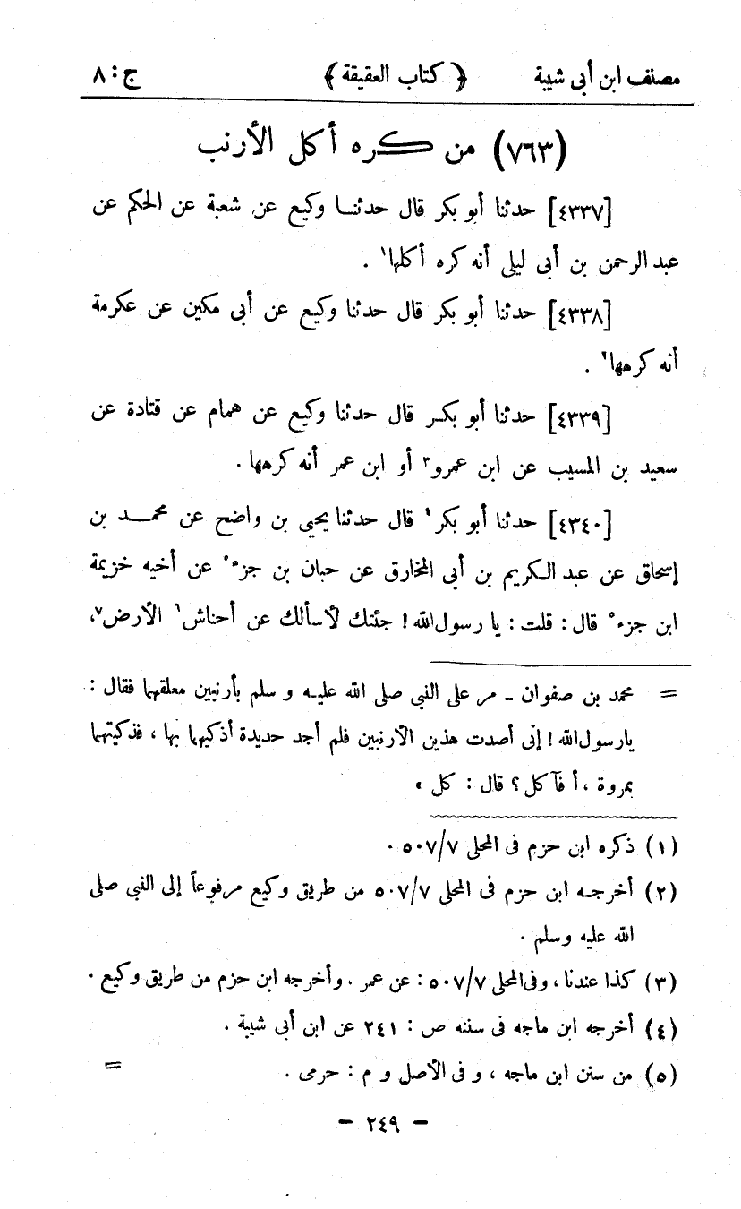 2 - مَنْ كَرِهَ أَكْلَ الأَرْنَبِ.