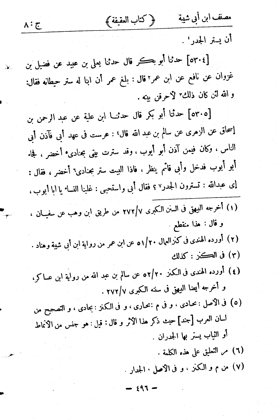 25761- حَدَّثَنَا يَعْلَى بْنُ عُبَيْدٍ ، عَنْ فُضَيْلِ بْنِ غَزْوَانَ ، عَنْ نَافِعٍ ، عَنِ ابْنِ عُمَرَ ، قَالَ : بَلَغَ عُمَرَ أَنَّ ابْنًا لَهُ سَتَرَ حِيطَانَهُ ، فَقَالَ : وَاللَّهِ لَئِنْ كَانَ كَذَلِكَ لأَحْرِقَنَّ بَيْتَهُ.