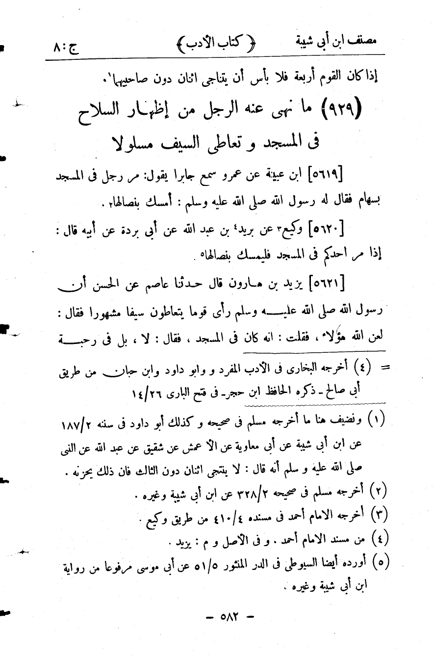 31- ما نهِي عنه الرّجل مِن إظهارِ السِّلاحِ فِي المسجِدِ وتعاطِي السّيفِ مسلولاً.