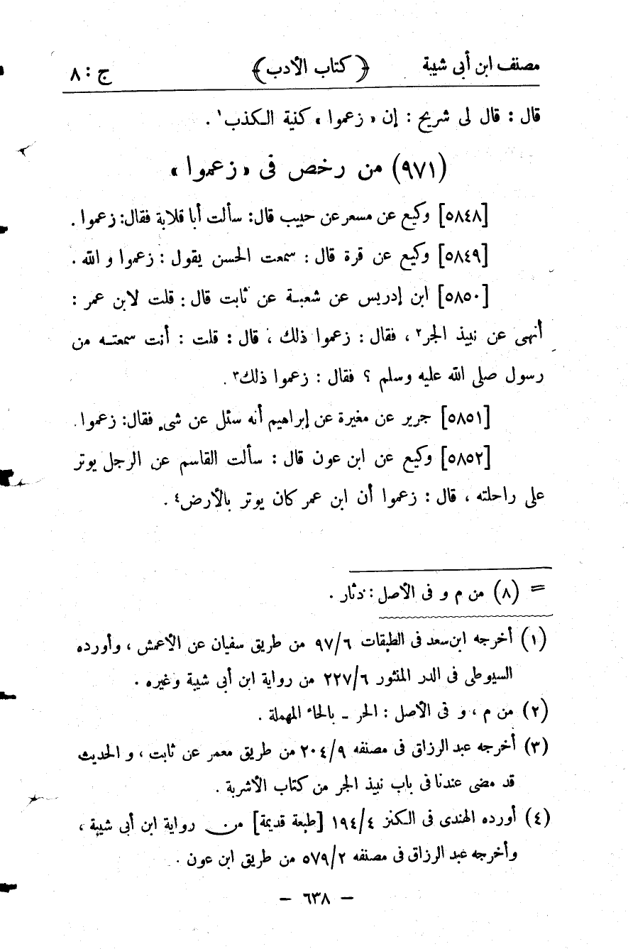 كتاب مصنف ابن أبي شيبة ط السلفية بالهند (اسم الجزء: 8)