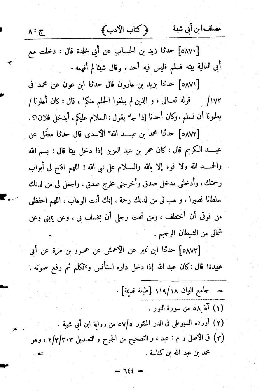 كتاب مصنف ابن أبي شيبة ط السلفية بالهند (اسم الجزء: 8)