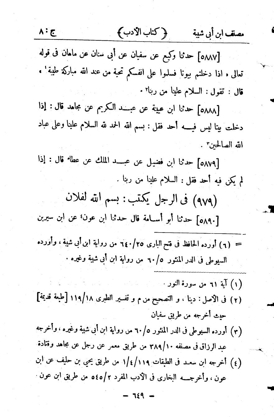 كتاب مصنف ابن أبي شيبة ط السلفية بالهند (اسم الجزء: 8)