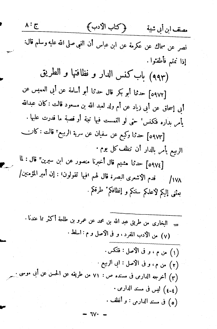 95- باب كنسِ الدّارِ ونظافتِها والطّرِيقِ.