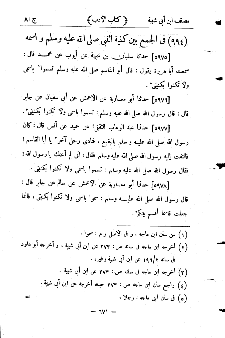96- فِي الجمعِ بين كنيةِ النّبِيِّ صلى الله عليه وسلم واسمِهِ.