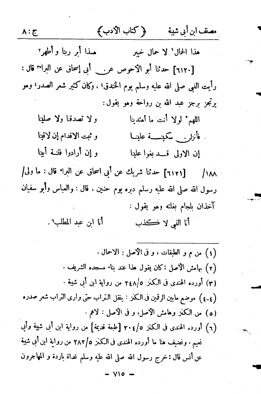 أَنَا النَّبِيُّ لاَ كَذِبْ ... أَنَا ابْنُ عَبْدِ الْمُطَّلِبْ.