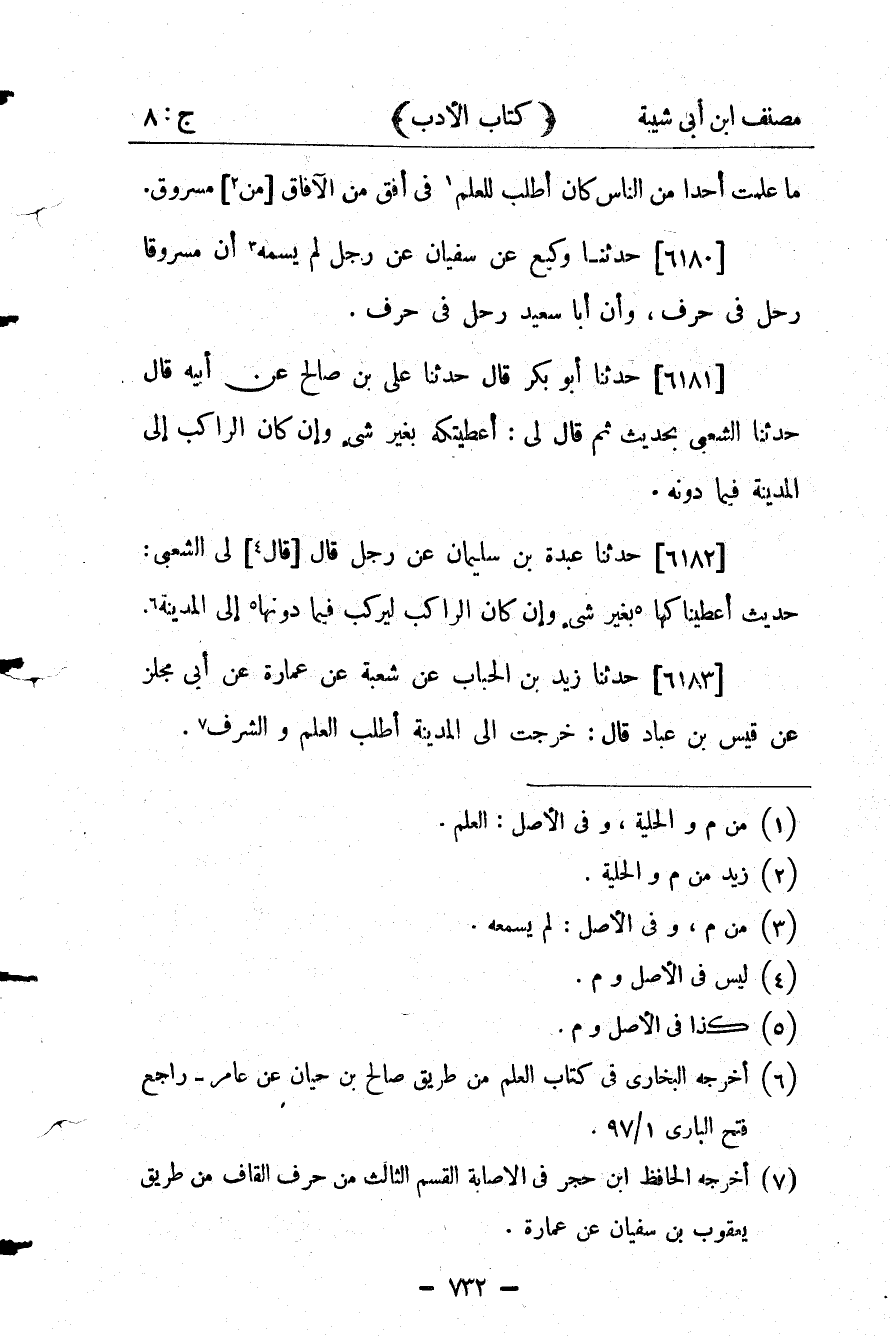 26656- حَدَّثَنَا زَيْدُ بْنُ الْحُبَابِ ، عَن شُعْبَةَ ، عَن عُمَارَةَ ، عَنْ أَبِي مِجْلَزٍ ، عَن قَيْسِ بْنِ عُبَادٍ ، قَالَ : خَرَجْت إلَى الْمَدِينَةِ أَطْلُبُ الْعِلْمَ وَالشَّرَفَ.