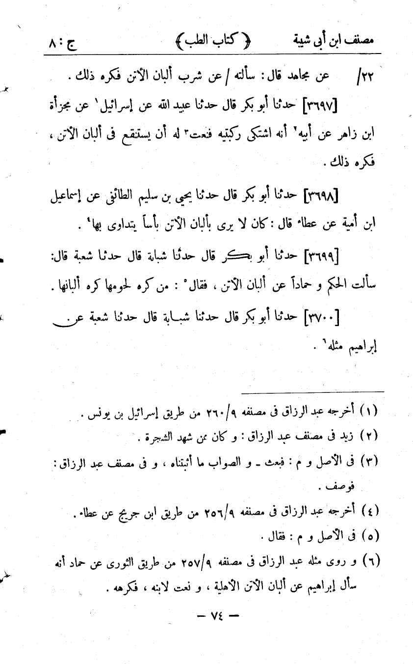 كتاب مصنف ابن أبي شيبة ط السلفية بالهند (اسم الجزء: 8)