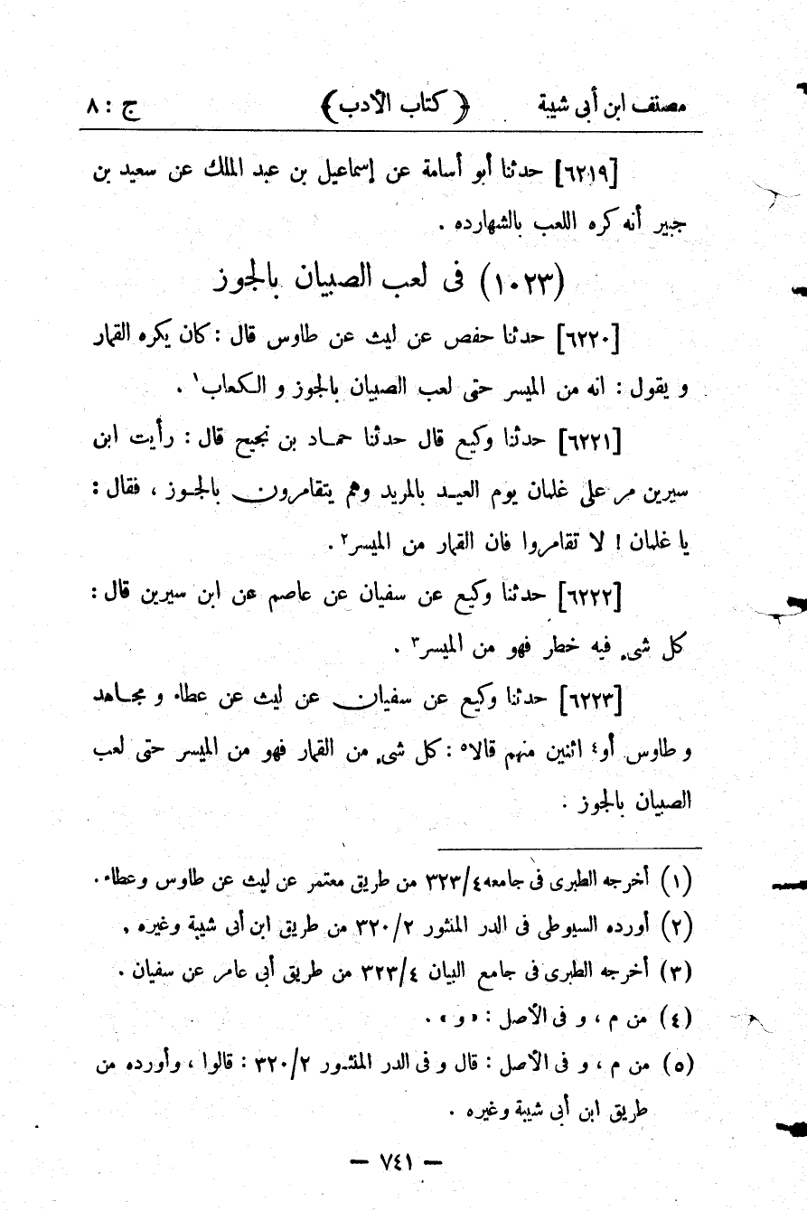 125- فِي لعِبِ الصِّبيانِ بِالجوزِ.