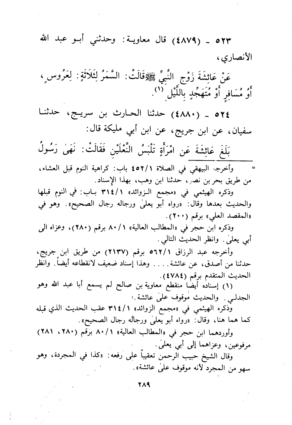 4880 - حَدَّثَنَا الْحَارِثُ بْنُ سُرَيْجٍ، حَدَّثَنَا سُفْيَانُ، عَنِ ابْنِ جُرَيْجٍ، عَنِ ابْنِ أَبِي مُلَيْكَةَ قَالَ: بَلَغَ عَائِشَةَ، عَنِ امْرَأَةٍ تَلْبَسُ النَّعْلَيْنِ، فَقَالَتْ: «§نَهَى رَسُولُ اللَّهِ صَلَّى اللهُ عَلَيْهِ وَسَلَّمَ عَنْ رُجْلَةِ النِّسَاءِ» Kرجاله ثقات