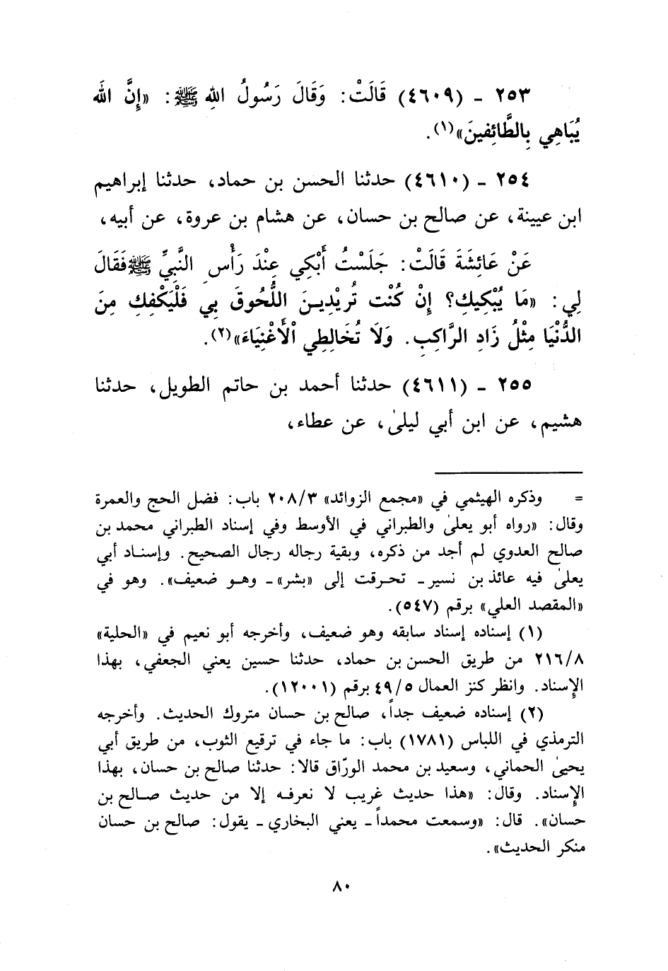 4609 - قَالَتْ: وَقَالَ رَسُولُ اللَّهِ صَلَّى اللهُ عَلَيْهِ وَسَلَّمَ: «§إِنَّ اللَّهَ يُبَاهِي بِالطَّائِفِينَ» Kإسناده ضعيف