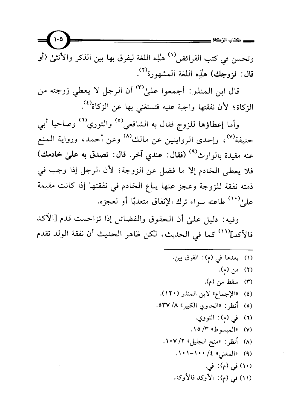 وتحسن في كتب الفرائض (¬1) هذِه اللغة ليفرق بها بين الذكر والأنثى (أو قال: لزوجك) هذِه اللغة المشهورة (¬2).