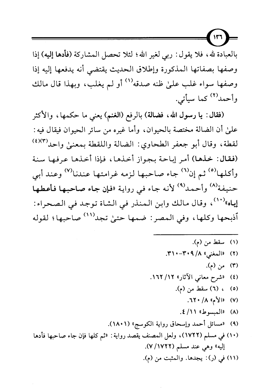 (¬10) في مسلم (1722)، ولعل المصنف يقصد رواية: "ثم كلها فإن جاء صاحبها فأدها إليه" وهي عند مسلم (1722/ 7).