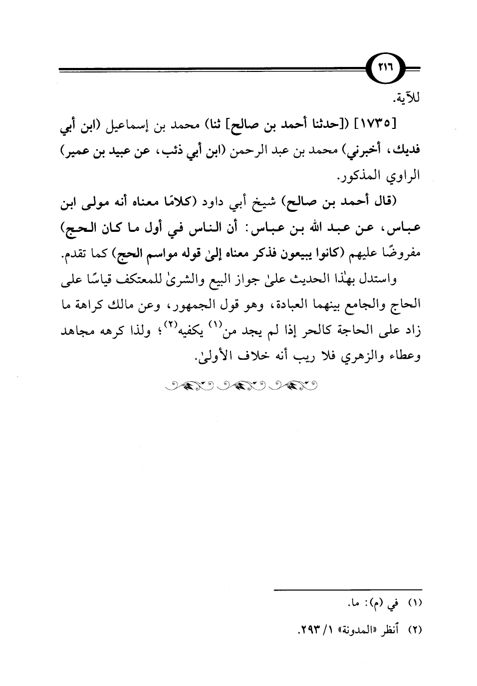 (¬2) انظر "المدونة" 1/ 293.