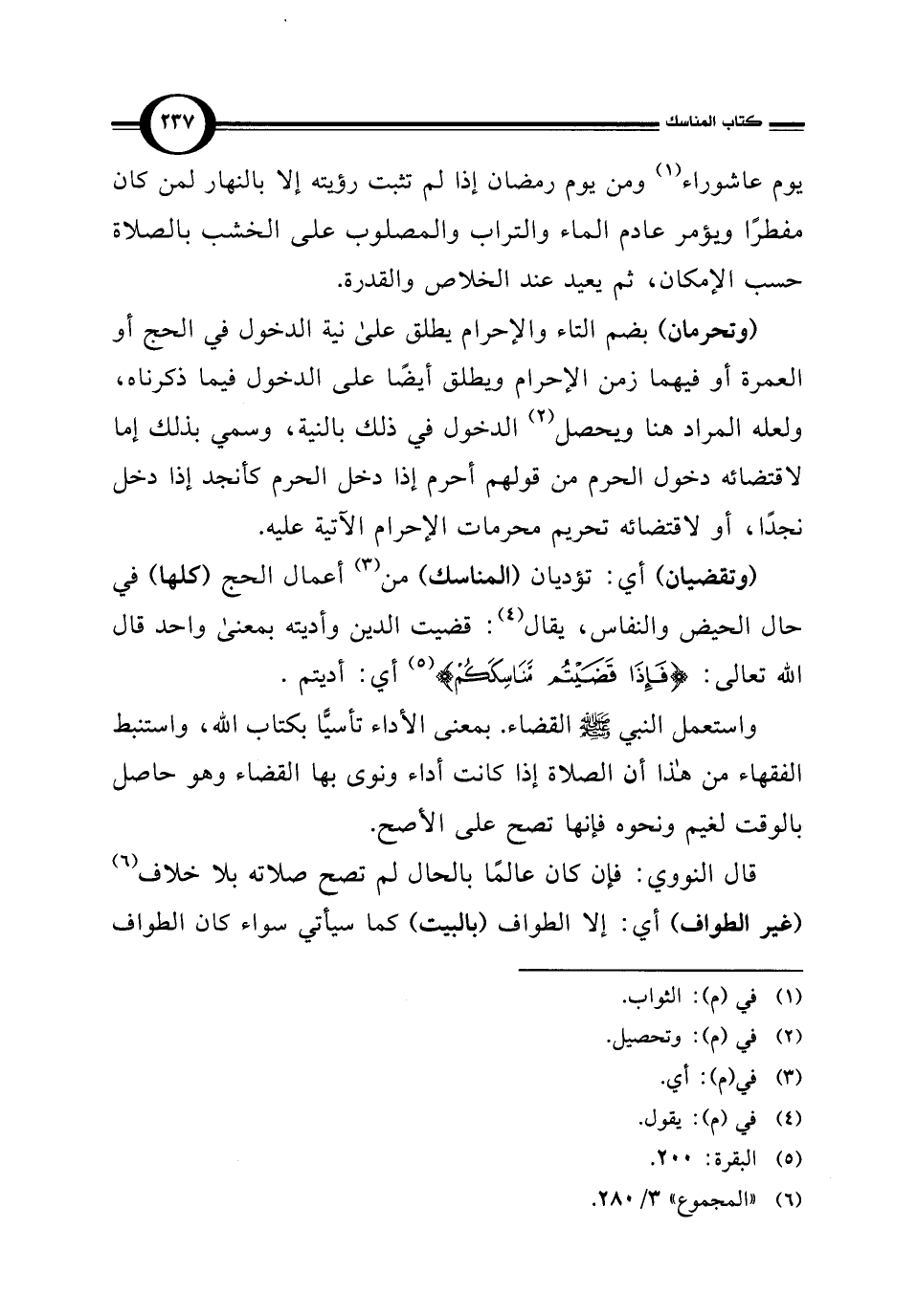 (وتحرمان) بضم التاء والإحرام يطلق على نية الدخول في الحج أو العمرة أو فيهما زمن الإحرام ويطلق أيضًا على الدخول فيما ذكرناه، ولعله المراد هنا ويحصل (¬2) الدخول في ذلك بالنية، وسمي بذلك إما لاقتضائه دخول الحرم من قولهم أحرم إذا دخل الحرم كأنجد إذا دخل نجدًا، أو لاقتضائه تحريم محرمات الإحرام الآتية عليه.