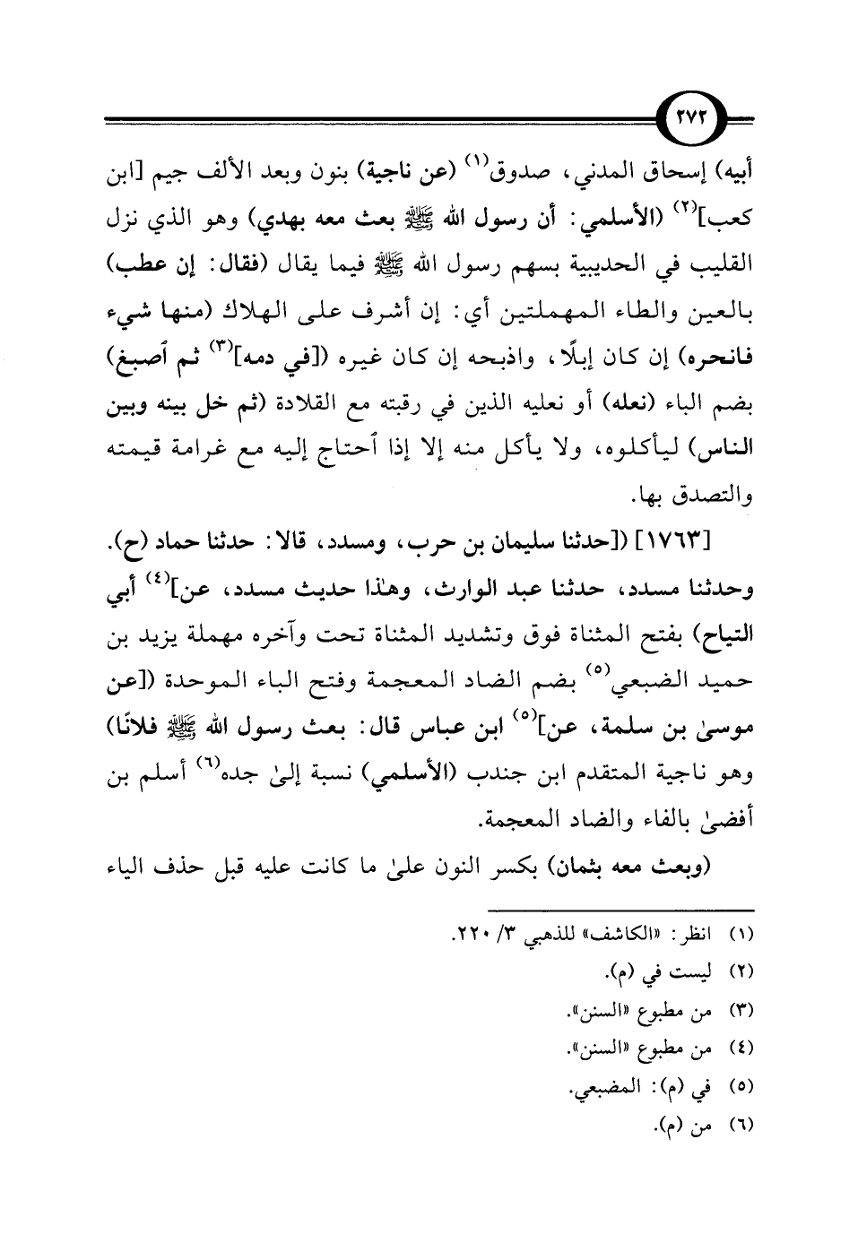 [1763] ([حدثنا سليمان بن حرب، ومسدد، قالا: حدثنا حماد (ح). وحدثنا مسدد، حدثنا عبد الوارث، وهذا حديث مسدد، عن] (¬4) أبي التياح) بفتح المثناة فوق وتشديد المثناة تحت وآخره مهملة يزيد بن حميد الضبعي (¬5) بضم الضاد المعجمة وفتح الباء الموحدة ([عن موسى بن سلمة، عن] (5) ابن عباس قال: بعث رسول الله - صلى الله عليه وسلم - فلانًا) وهو ناجية المتقدم ابن جندب (الأسلمي) نسبة إلى جده (¬6) أسلم بن أفضى بالفاء والضاد المعجمة.