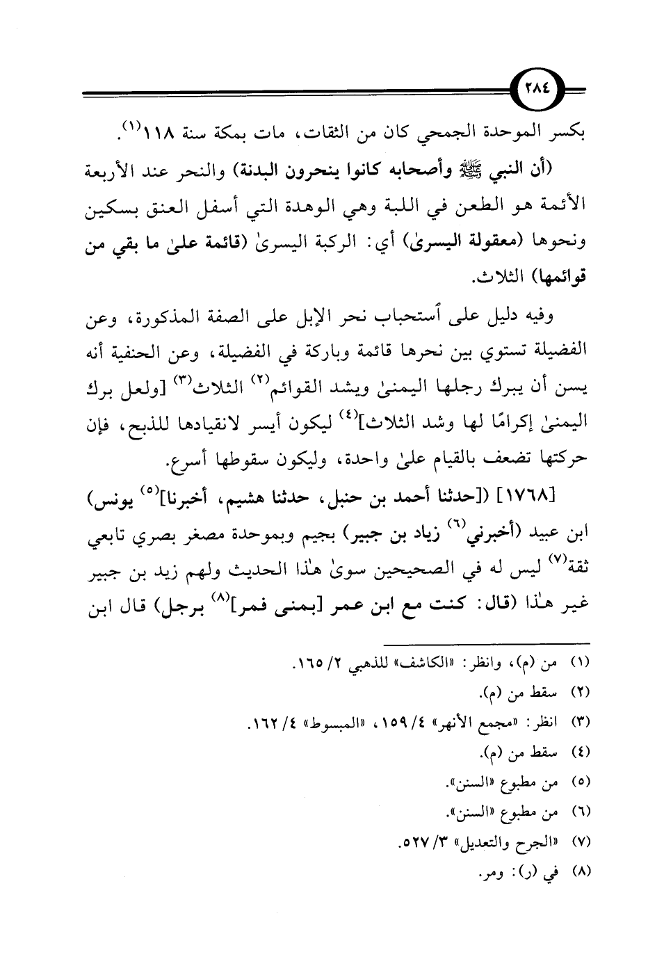 [1768] ([حدثنا أحمد بن حنبل، حدثنا هشيم، أخبرنا] (¬5) يونس) ابن عبيد (أخبرني (¬6) زياد بن جبير) بجيم وبموحدة مصغر بصري تابعي ثقة (¬7) ليس له في الصحيحين سوى هذا الحديث ولهم زيد بن جبير غير هذا (قال: كنت مع ابن عمر [بمنى فمر] (¬8) برجل) قال ابن