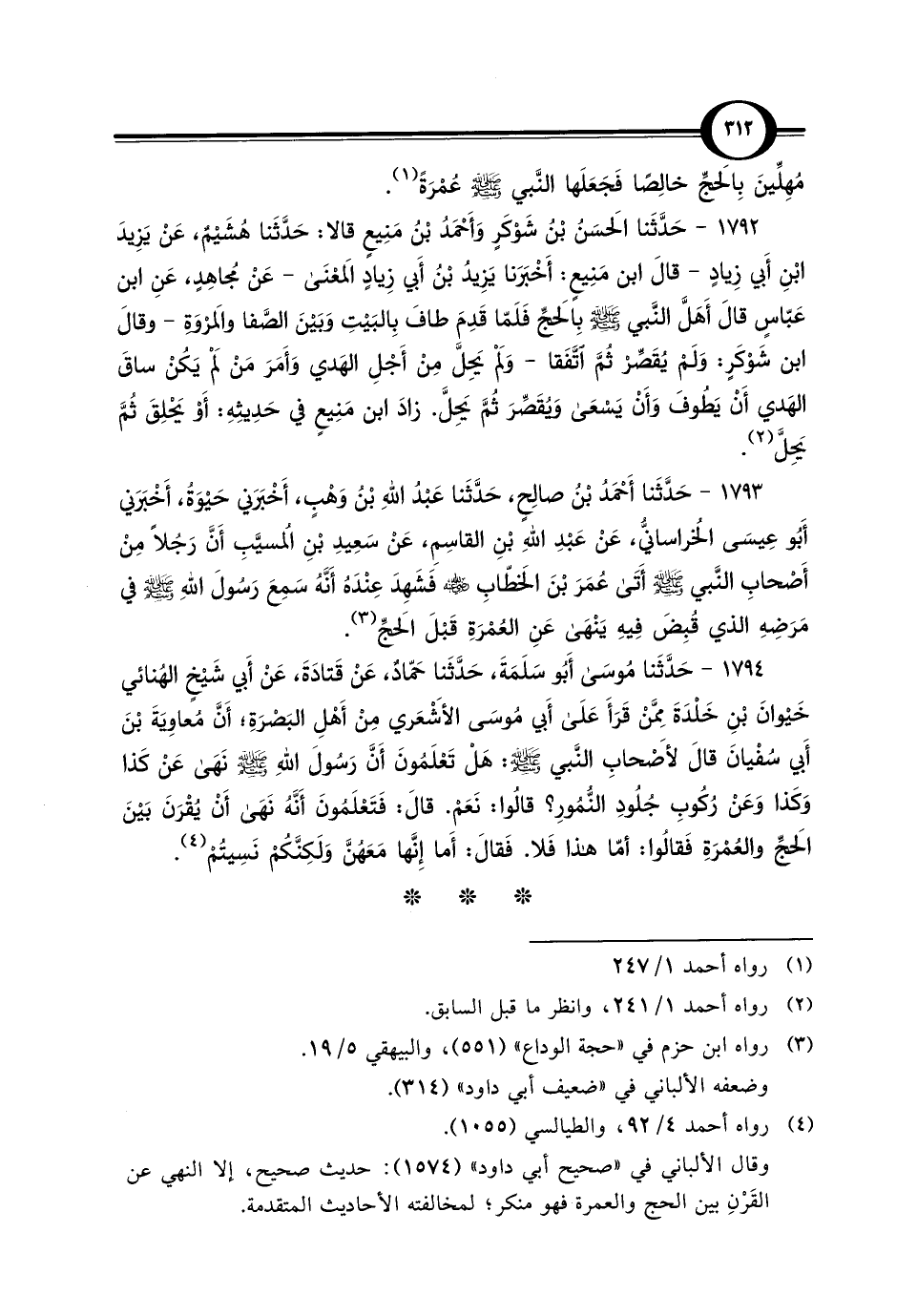 وقال الألباني في "صحيح أبي داود" (1574): حديث صحيح، إلا النهي عن القَرْنِ بين الحج والعمرة فهو منكر؛ لمخالفته الأحاديث المتقدمة.
