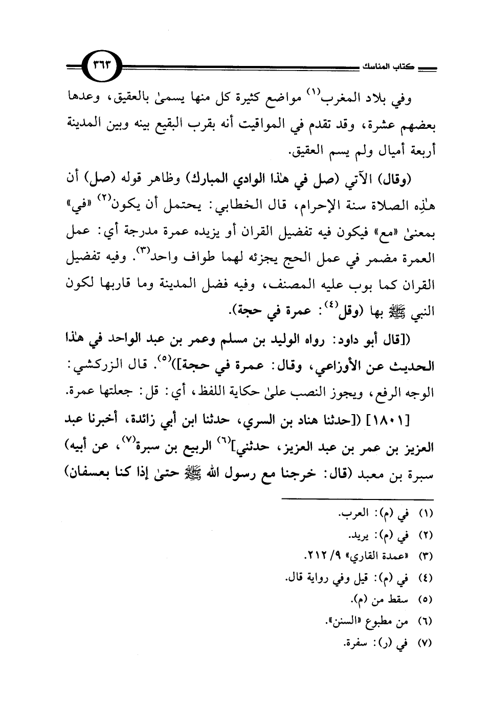[1801] ([حدثنا هناد بن السري، حدثنا ابن أبي زائدة، أخبرنا عبد العزيز بن عمر بن عبد العزيز، حدثني] (¬6) الربيع بن سبرة (¬7)، عن أبيه) سبرة بن معبد (قال: خرجنا مع رسول الله - صلى الله عليه وسلم - حتى إذا كنا بعسفان)