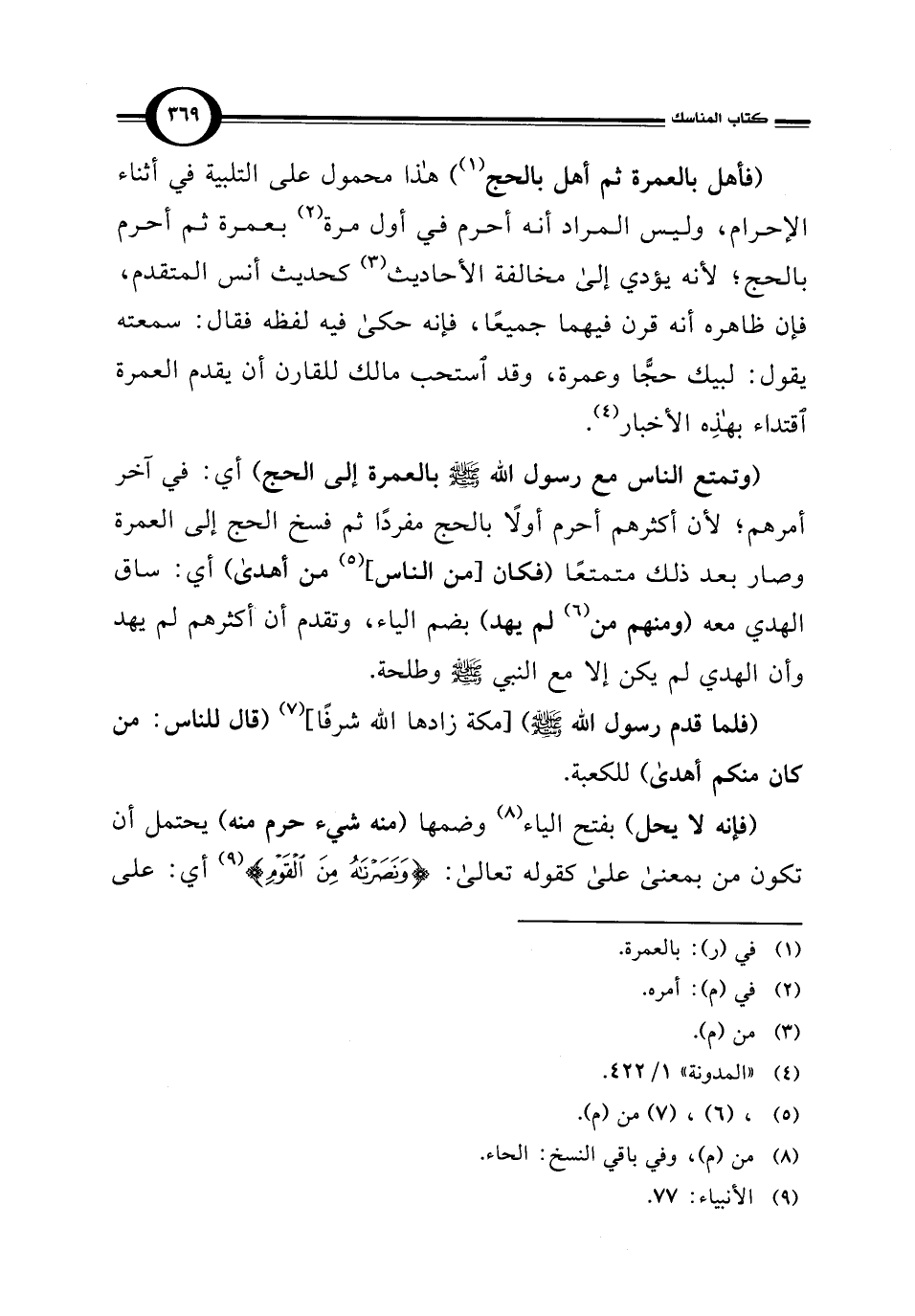 (وتمتع الناس مع رسول الله - صلى الله عليه وسلم - بالعمرة إلى الحج) أي: في آخر أمرهم؛ لأن أكثرهم أحرم أولًا بالحج مفردًا ثم فسخ الحج إلى العمرة وصار بعد ذلك متمتعًا (فكان [من الناس] (¬5) من أهدى) أي: ساق الهدي معه (ومنهم من (¬6) لم يهد) بضم الياء، وتقدم أن أكثرهم لم يهد وأن الهدي لم يكن إلا مع النبي - صلى الله عليه وسلم - وطلحة.