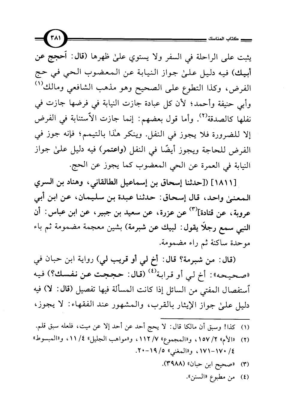 [1811] ([حدثنا إسحاق بن إسماعيل الطالقاني، وهناد بن السري المعنى واحد، قال إسحاق: حدثنا عبدة بن سليمان، عن ابن أبي عروبة، عن قتادة] (¬3) عن عزرة، عن سعيد بن جبير، عن ابن عباس: أن النبي سمع رجلًا يقول: لبيك عن شبرمة) بشين معجمة مضمومة ثم باء موحدة ساكنة ثم راء مضمومة.