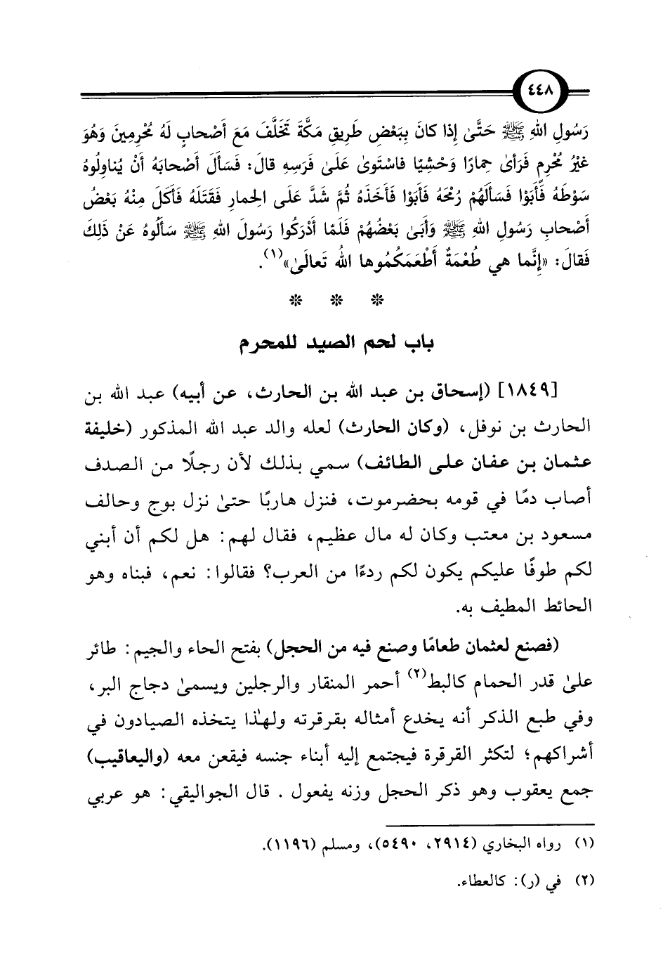باب لحم الصيد للمحرم