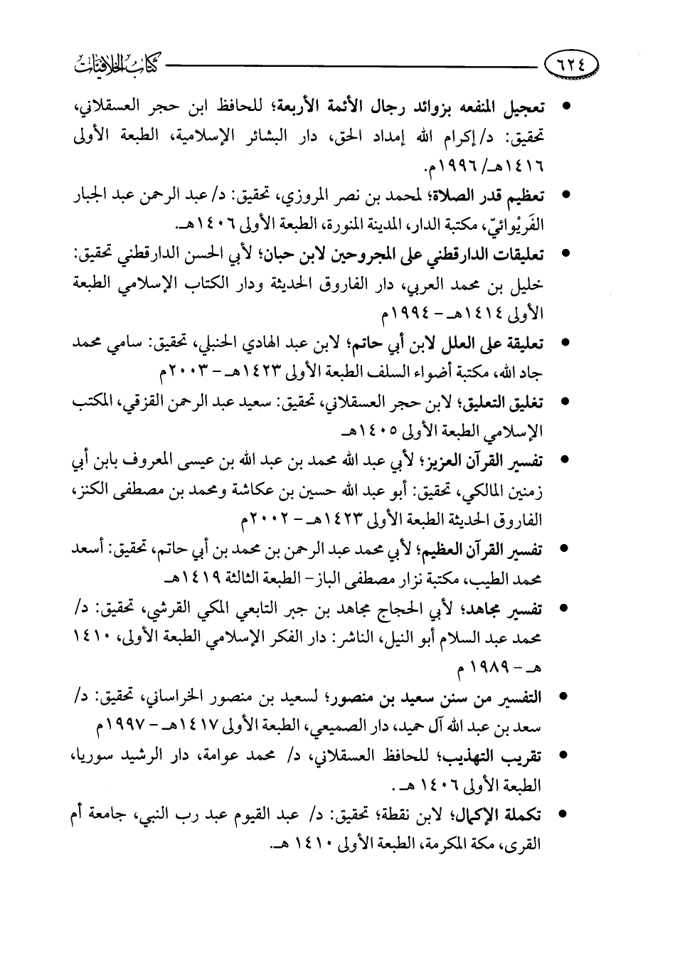 • جامع التحصيل في أحكام المراسيل؛ صلاح الدين العلائي، تحقيق: حمدي عبد المجيد السلفي، عالم الكتب الطبعة الثانية 1407 هـ - 1986 م