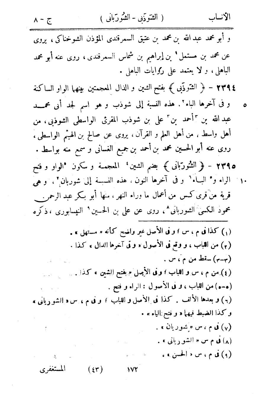 [6] وبعدها الألف. كذا في الأصل واللباب، وفي م، س «الشوريانى» وكذا الضبط فيهما «وفتح الياء» .