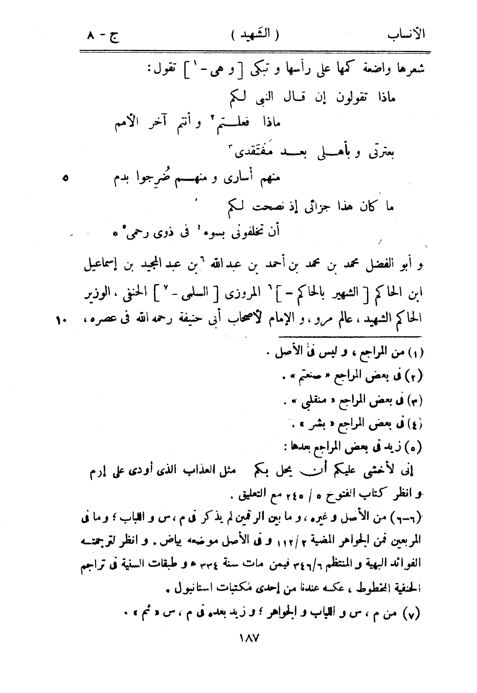 وأبو الفضل محمد بن محمد بن أحمد بن عبد الله [6] بن عبد المجيد بن إسماعيل ابن الحاكم [الشهير بالحاكم-] [6] المروزي [السلمي-[7]] الحنفي، الوزير الحاكم الشهيد، عالم مرو، والإمام لأصحاب أبى حنيفة رحمه الله في عصره،