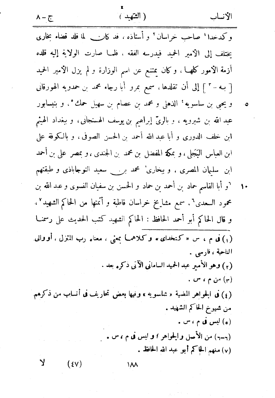 [4] في الجواهر المضية «شاسويه» وفيها بعض تحاريف في أنساب من ذكرهم من شيوخ الحاكم الشهيد.