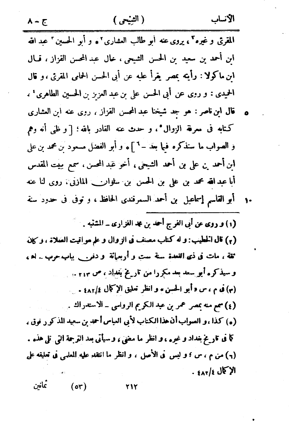 [2] قال الخطيب: وله كتاب مصنف في الزوال وعلم مواقيت الصلاة، وكان ثقة، مات في ذي القعدة سنة ست وأربعمائة ودفن بباب حرب- انتهى، وسيذكره أبو سعد بعد مكررا من تاريخ بغداد، ص 213.