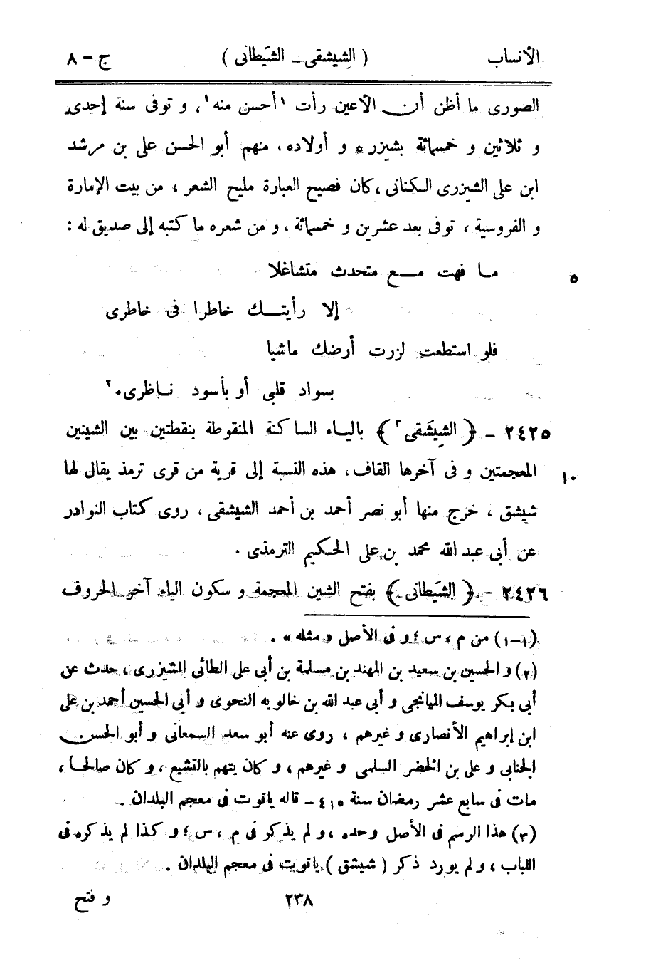 [3] هذا الرسم في الأصل وحده، ولم يذكر في م، س، وكذا لم يذكره في اللباب، ولم يورد ذكر (شيشق) ياقوت في معجم البلدان.