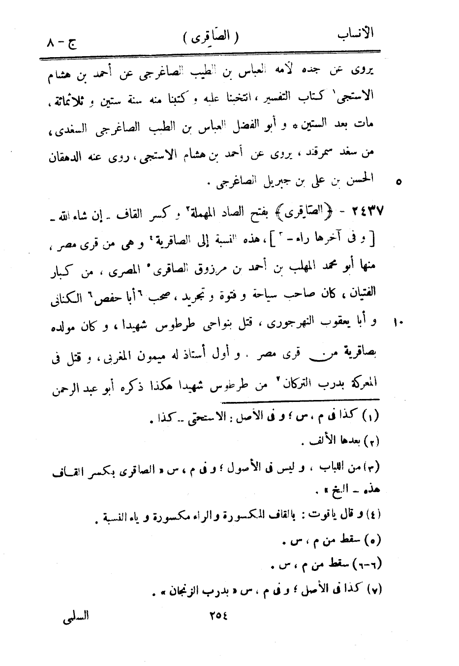 [3] من اللباب، وليس في الأصول، وفي م، س «الصاقرى بكسر القاف هذه- إلخ» .