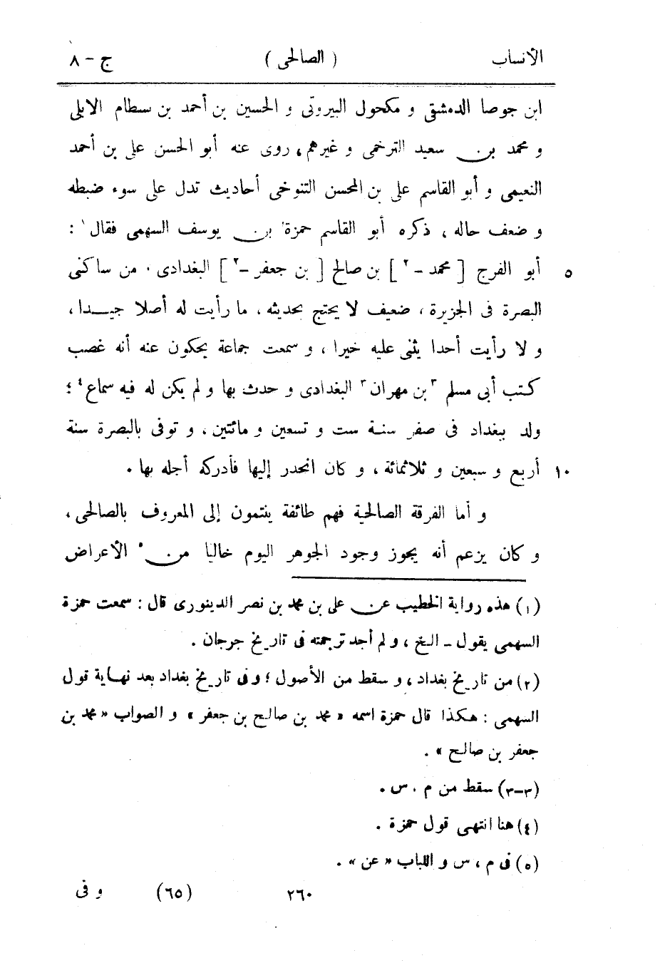 [2] من تاريخ بغداد، وسقط من الأصول، وفي تاريخ بغداد بعد نهاية قول السهمي: هكذا قال حمزة اسمه «محمد بن صالح بن جعفر» والصواب «محمد بن جعفر بن صالح» .