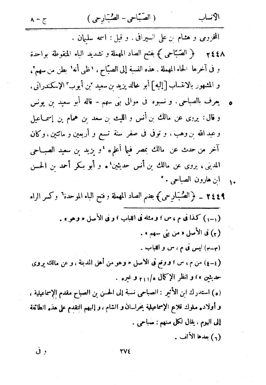 [5] استدرك ابن الأثير: الصباحي نسبة إلى الحسن بن الصباح مقدم الإسماعيلية، وأولاده ملوك قلاع الإسماعيلية بخراسان والشام، وإليهم التقدم على هذه الطائفة إلى اليوم، يقال لكل منهم: صباحي.
