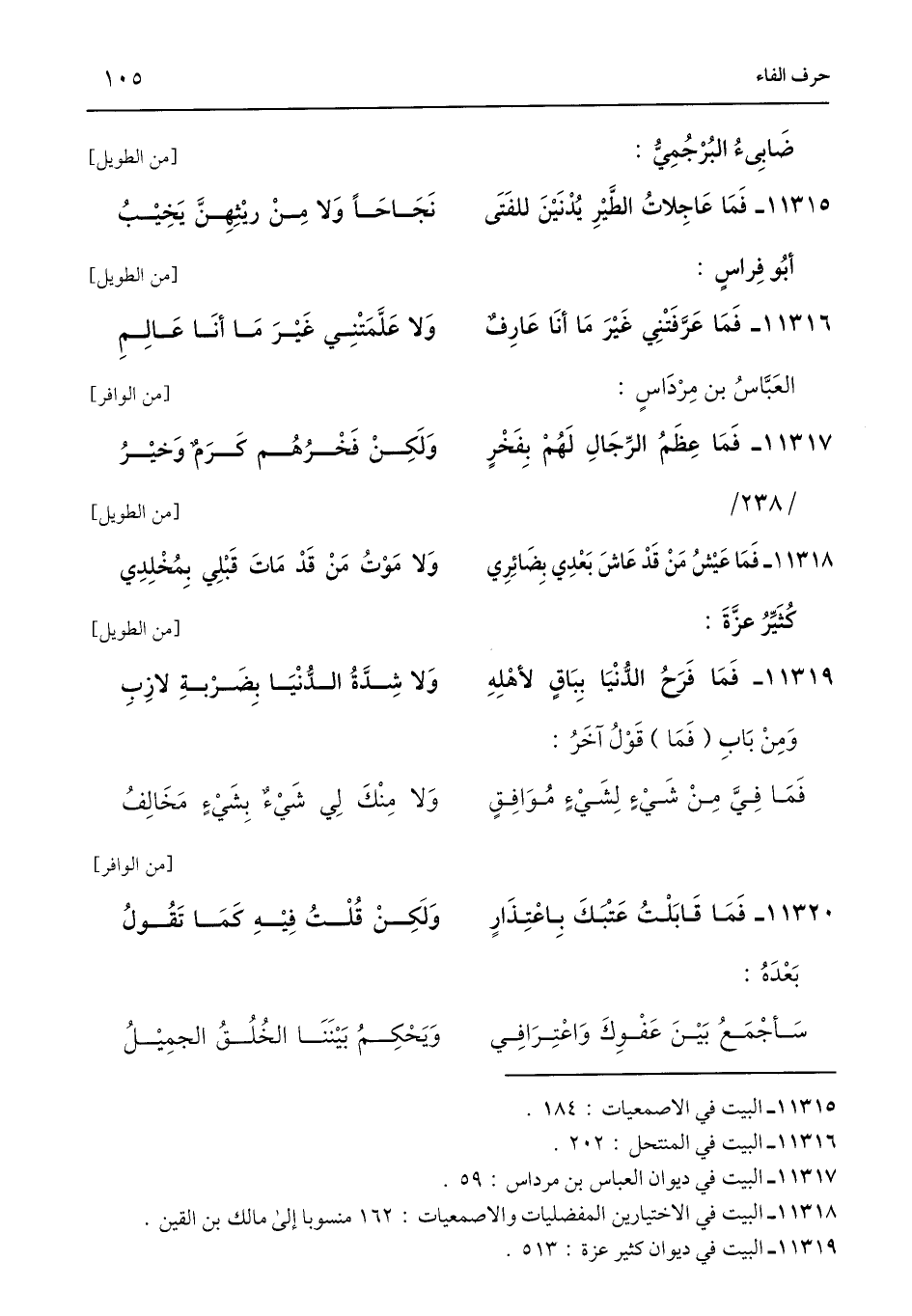 11318 - البيت في الاختيارين المفضليات والأصمعيات: 162 منسوبا إلى مالك بن القين.