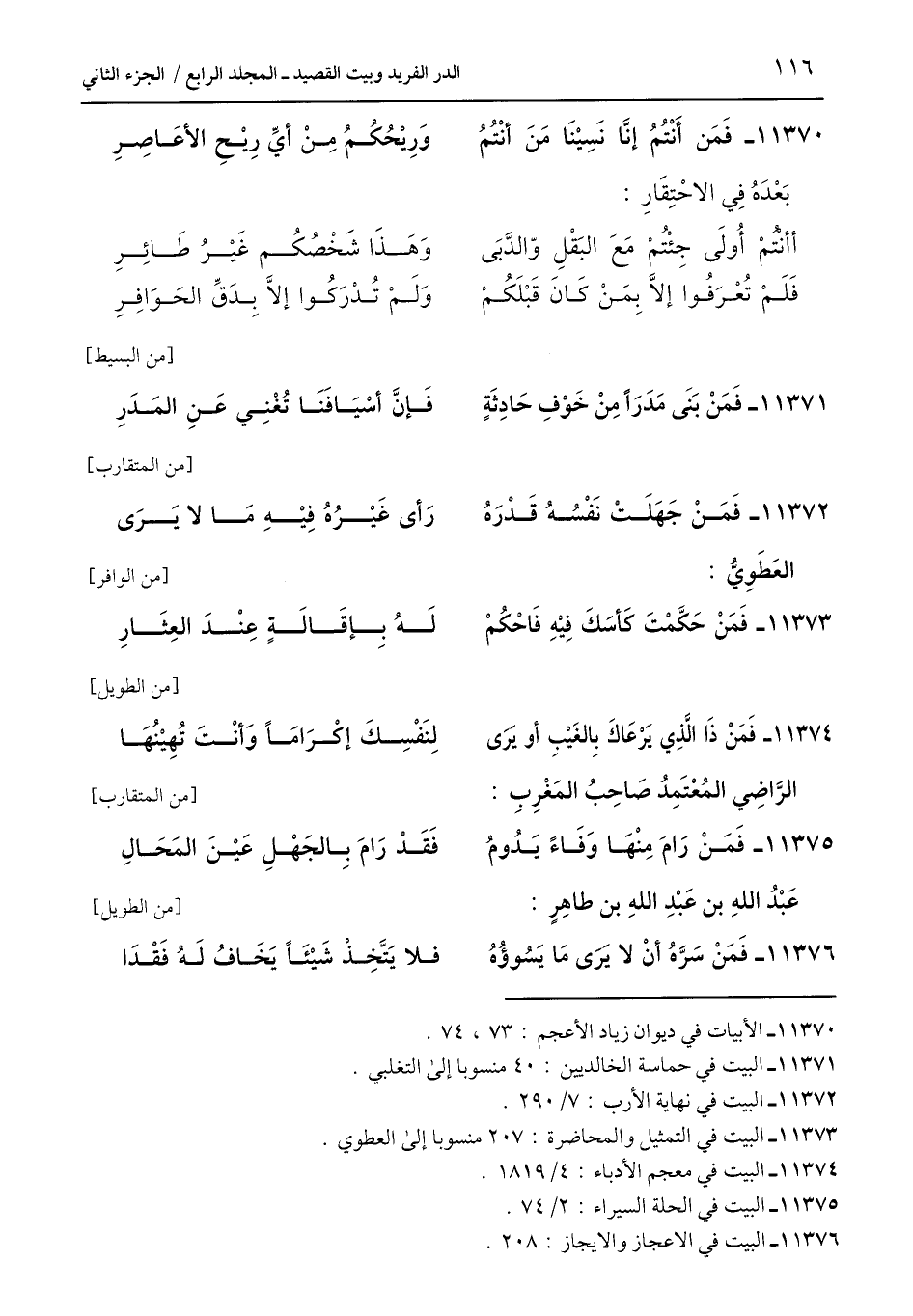 11373 - البيت في التمثيل والمحاضرة: 207 منسوبا إلى العطوي.